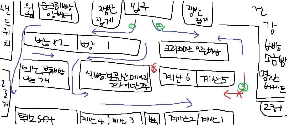 일단 사실 빵 종류가 많기도하고 빵 진열 위치는 쪼금씩 날마다 바뀌는 것 같으니까 대충 잡아 그려둿어